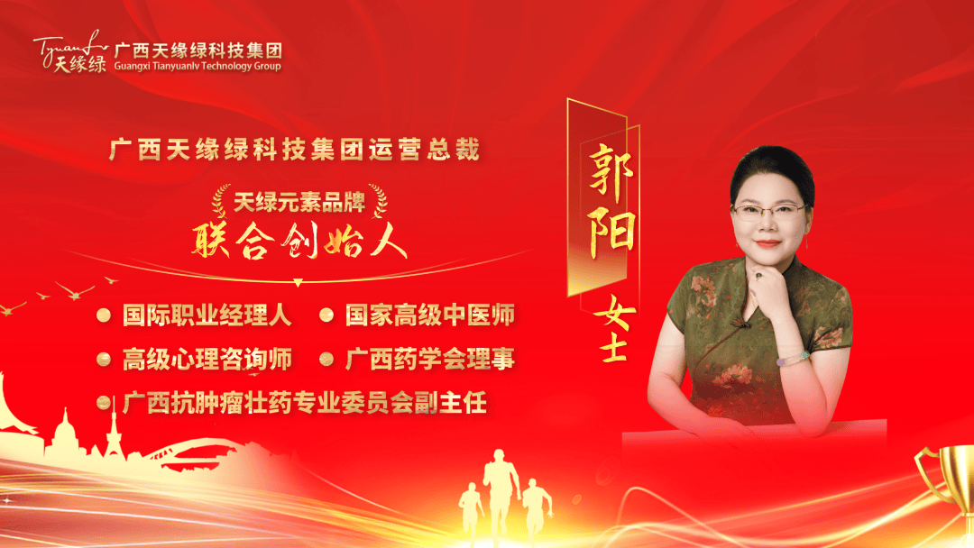 郭陽女士,作為天綠元素品牌聯(lián)合創(chuàng)始人,不僅肩負(fù)著引領(lǐng)品牌發(fā)展的重任,同時(shí)在大健康領(lǐng)域深耕細(xì)作,擔(dān)任著廣西藥學(xué)會(huì)理事、廣西膏方專業(yè)委員會(huì)委員以及廣西抗腫瘤壯藥專業(yè)委員會(huì)副主任等多個(gè)重要職務(wù)。此外,她還擁有國際職業(yè)經(jīng)理人、高級(jí)心理咨詢師與國家高級(jí)中醫(yī)師的權(quán)威資質(zhì)。郭陽女士的每一步都堅(jiān)實(shí)而輝煌,不僅要推動(dòng)天綠元素惠及更多人,更要引領(lǐng)團(tuán)隊(duì)實(shí)現(xiàn)“健康他人,成就自己”的企業(yè)愿景,讓每個(gè)人都能在天緣綠實(shí)現(xiàn)自我價(jià)值,共同書寫健康事業(yè)的新篇章。