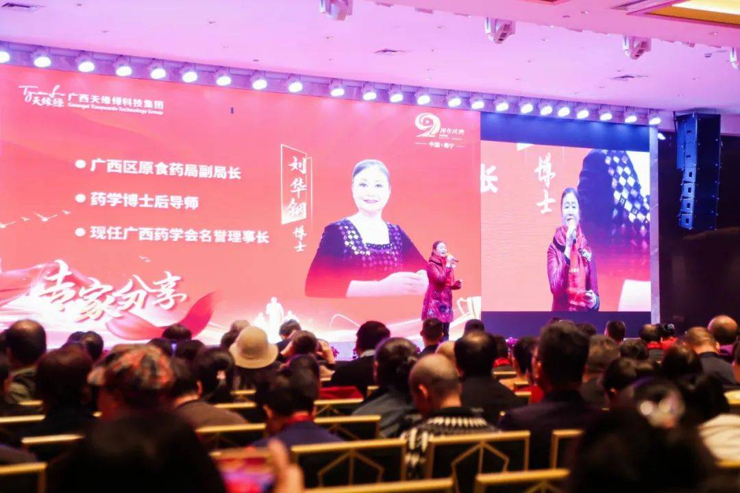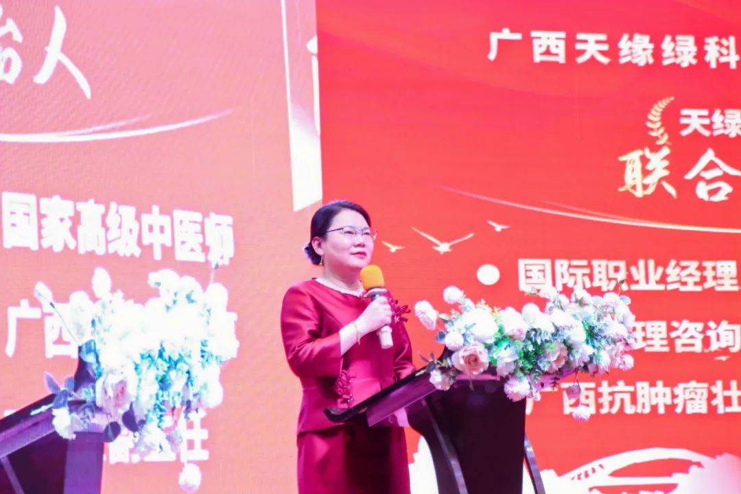 慶典現(xiàn)場,燈光璀璨,嘉賓如云。廣西天緣綠科技集團名譽董事長、天緣綠事業(yè)領(lǐng)航人、天綠元素品牌創(chuàng)始人李玉強 先生, 廣西天緣綠科技集團運營總裁、天綠元素品牌聯(lián)合創(chuàng)始人、廣西藥學會理事、廣西抗腫瘤壯藥專業(yè)委員會副主任郭陽 女士,藥學博士后導師、廣西藥學會名譽理事長劉華鋼 博士,廣西醫(yī)藥商會執(zhí)行會長兼黨委書記黃建國 先生,北京康芬中醫(yī)藥研究院首席科學家、北相學派生物學家馮勁松 教授,廣西區(qū)市場監(jiān)管局主管的廣西打假扶優(yōu)信息協(xié)會古平仁 會長,南寧市企業(yè)和企業(yè)家聯(lián)合會陳志聰 會長等領(lǐng)導和嘉賓、集團全體員工及經(jīng)銷商出席慶典,共同見證并慶祝這一榮耀時刻。