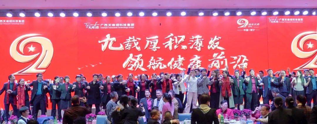 2025年1月13日,南寧沃笙五星級(jí)酒店內(nèi),璀璨的宴會(huì)廳見(jiàn)證了“九載厚積薄發(fā)·領(lǐng)航健康前沿”天緣綠集團(tuán)九周年慶典的盛大舉行。集團(tuán)領(lǐng)導(dǎo)、嘉賓、員工以及來(lái)自全國(guó)各地的經(jīng)銷商伙伴等近千人歡聚一堂,共享這場(chǎng)年度盛宴。